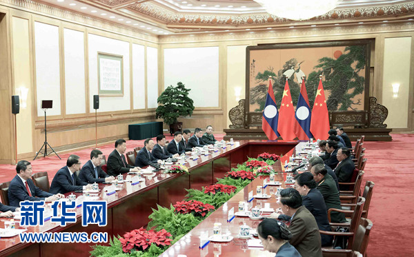 習近平強調,隨著中老關系進入新的發(fā)展階段,雙方應在鞏固命運共同體共識基礎上,聚焦命運共同體建設,推動其由理念轉化為行動、由愿景轉變?yōu)楝F(xiàn)實,讓中老命運共同體落地生根、開花結果。一要加強戰(zhàn)略溝通,鞏固命運共同體政治基礎。中老雙方應開展全方位、多層次、機制性對話交流,不斷提升互信水平。二要深化務實合作,拉緊命運共同體利益紐帶。雙方應著力推動“一帶一路”框架下大項目合作,加強民生和扶貧合作,上下聯(lián)動,形成中老合作新格局。三要加強安全合作,筑牢命運共同體安全防線。雙方應加強在聯(lián)合國、東亞合作、瀾湄合作等多邊機制中的協(xié)調配合,有效維護兩國共同利益。四要活躍人文交流,夯實命運共同體民意基礎。通過民間往來和人文交流,讓命運共同體意識真正扎根到民間、深植在基層。五要重視生態(tài)保護,推動命運共同體持續(xù)發(fā)展。雙方應就生態(tài)和環(huán)保加強交流互鑒,探索打造綠色共同體的新路。