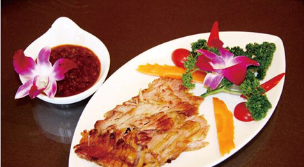 老撾多河流,自然產(chǎn)好魚,這里的魚個大柔嫩還鮮美多汁。當?shù)厝俗钕矚g將這種扁魚烤著吃。而且烤的方法很獨特,把魚內(nèi)臟去凈后塞上一把新鮮的檸檬草。不但去腥,還讓魚平添一份檸檬的清香。最地道的老撾烤魚吃法是用生的綠菜葉子包裹著涼米粉、生茄子和蘸著調(diào)料的魚肉包一個大包,一口吞到嘴里,非常鮮嫩爽口。