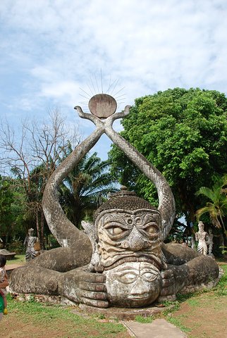 坐落在首都萬象東南部湄公河畔上的香昆寺(又叫佛像公園),如其名,公園里到處都是千姿百態(tài)的佛像和雕塑,是一個怪人荒誕野心的紀(jì)念物。它的創(chuàng)建者創(chuàng)建者班勒威·蘇里拉是一名泰國僧侶,他將印度教和佛教的哲學(xué)思想、傳說和肖像學(xué)融會貫通,組合成一個神秘的整體。
