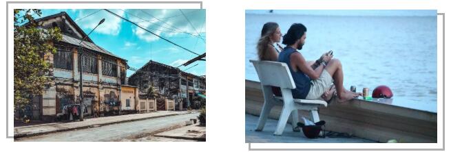 走在貢布市街頭,隨處可見的法式建筑,會使你有一種誤入上世紀法國的時空錯落感,但市場內(nèi)充滿著的濃濃東南亞氣息,又會將你拉回到了現(xiàn)實當(dāng)中。貢布曾是法屬殖民地,如今成為了法國人精心修飾過的浪漫度假小鎮(zhèn)。每天圍坐在河邊的酒吧里看著落日吹風(fēng),偶爾有些游客要了一瓶啤酒,便在河邊坐上一天。時間在這里仿佛不再流逝,你可以就這樣悠閑地享受貢布小城里慵懶的午后時光。
