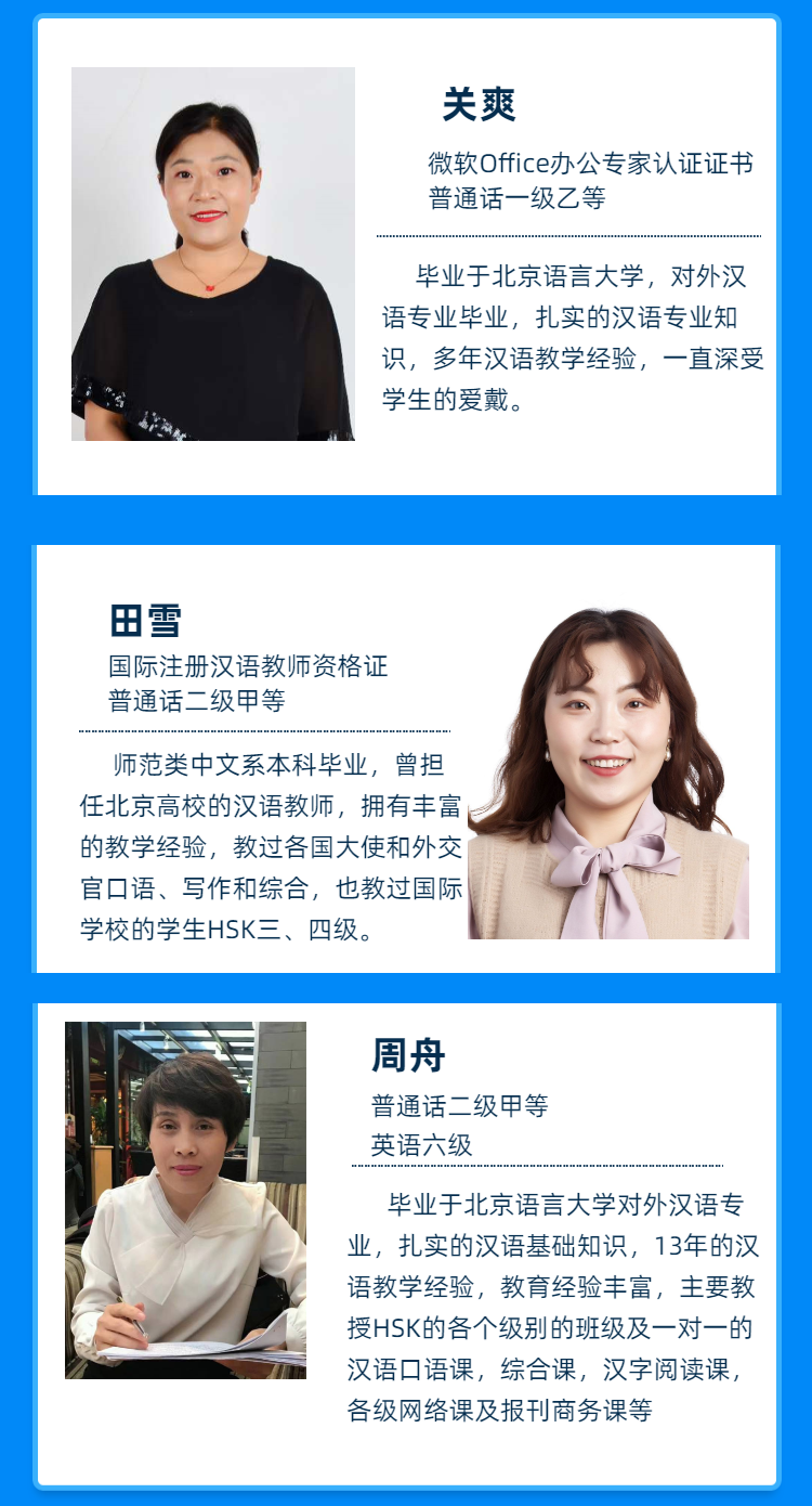 金沛漢語學院擁有雄厚師資力量和優(yōu)秀的教師團隊,中國名校名師在線課堂,扎實的專業(yè)知識、漢語考試技巧、方向,根據(jù)學生目標,制定適合的教學計劃,助你順利過關!