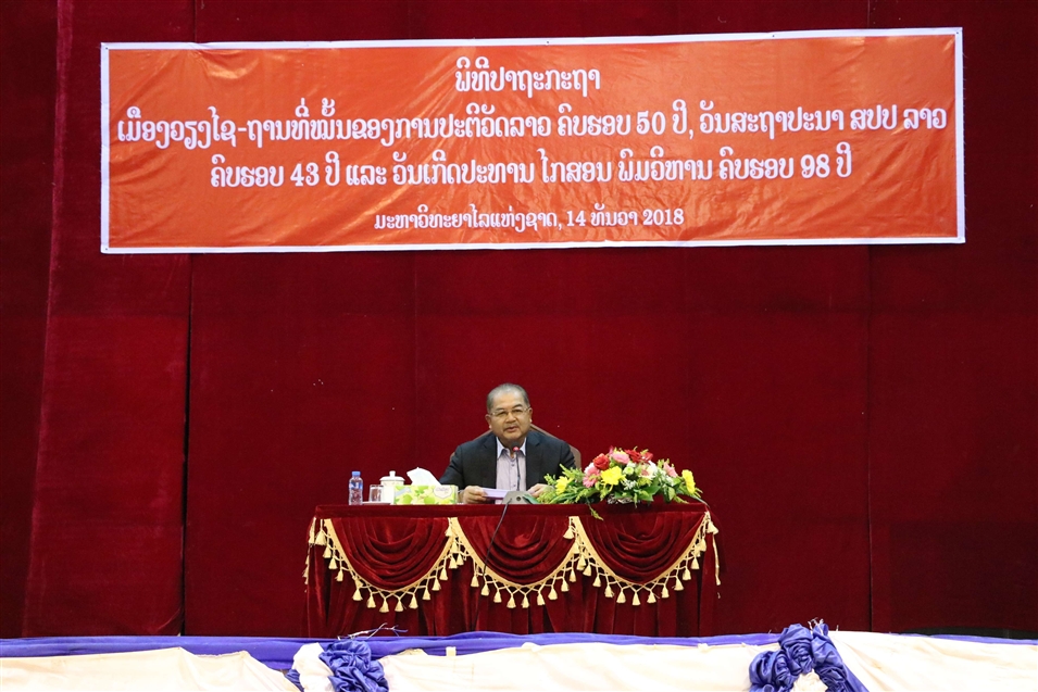 2018年12月14日,老撾國立大學(xué)組織師生收聽“建立會(huì)曬市老撾革命根據(jù)地50周年”,“老撾人民民主共和國成立43周年”和“主席誕辰98周年”等重要講話。