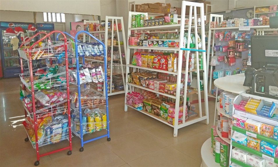 小商店都有一個特點——“麻雀雖小,五臟俱全”。宿舍區(qū)小商店面積大概55平米,里面整齊排放著幾排貨架,各種商品琳瑯滿目。