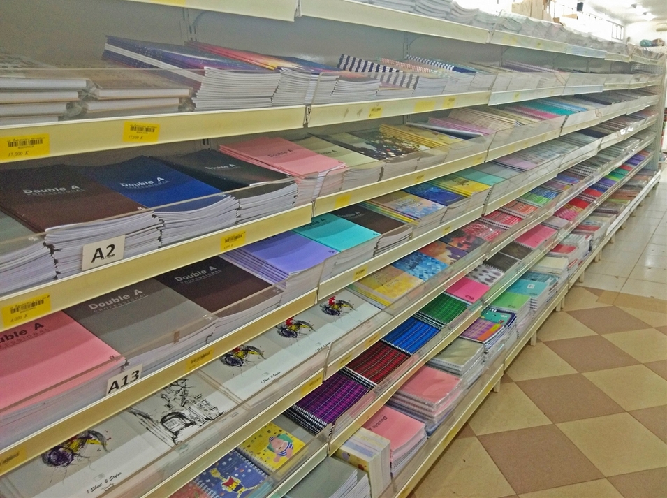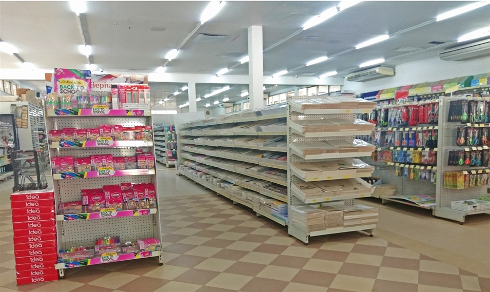 相對于食堂區(qū)小商店和宿舍區(qū)小商店,這里更多的是售賣文具和一些文體活動用品。