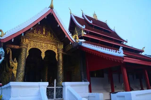 邁佛寺是瑯勃拉邦最著名的寺廟之一,也是這里最大,裝飾最華麗的寺廟。寺廟建于18世紀(jì),座落于王宮博物館附近。寺內(nèi)供奉著一座綠寶石鑄成的佛像。邁佛寺的建筑風(fēng)格比較特別,其五層檐的佛殿遵循了典型的瑯勃拉邦風(fēng)格,但通常建在旁邊的回廊卻建在了山墻的位置,很不尋常。邁佛寺曾經(jīng)毀于入侵者手中,除了主殿外其他建筑大部分是重修的。寺廟的前廊有裝飾華麗的柱子和奢侈的純金浮雕。浮雕敘述了佛祖生平和老撾雨神的故事,也有來自羅摩衍那和鄉(xiāng)村生活的場景。在重要的節(jié)日里,勃拉邦佛將從皇宮博物館里請(qǐng)出放在這里供信徒們參拜。