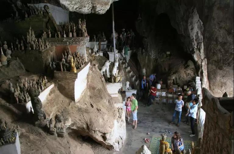 坦普坎溶洞是老撾人心中神圣的地方,受歡迎的大部分原因是因?yàn)槿芏蠢锏臑a湖,主洞室供奉著一尊泰國風(fēng)格的青銅臥佛,有幾條幽深的地道從主洞室分岔進(jìn)入山腹。