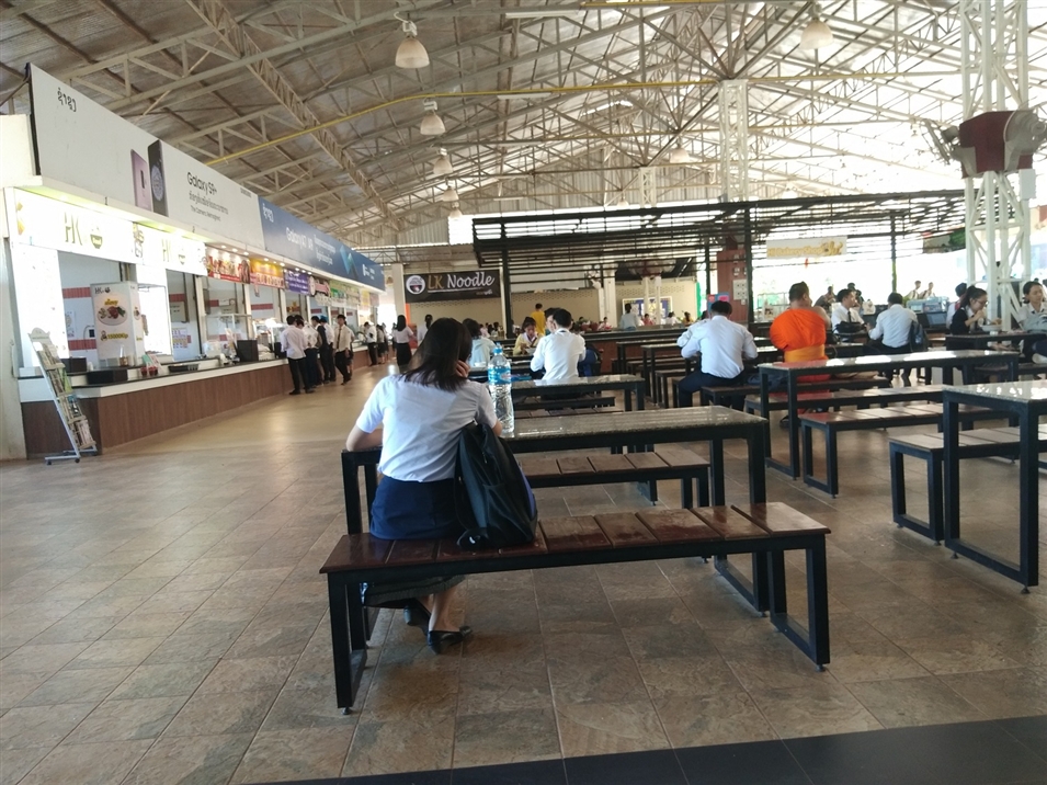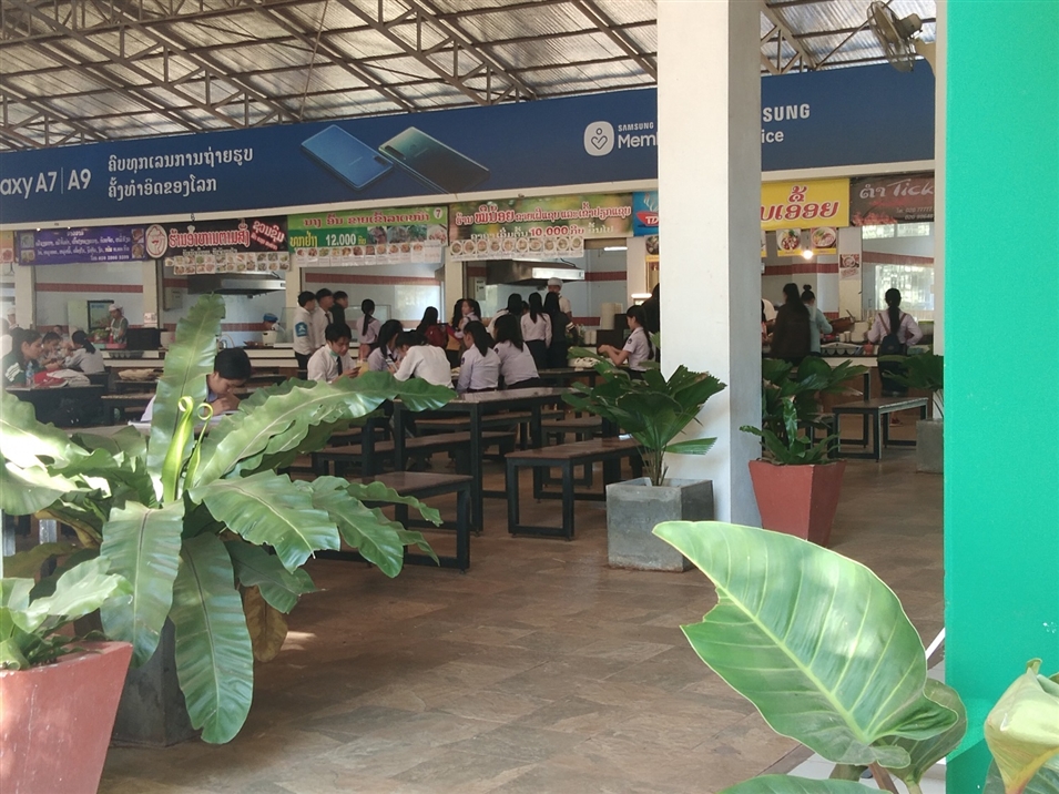 老撾國立大學(xué)的食堂帶有很濃郁的東南亞風格,與中國高校的密封式建筑不同,它的四面圍墻基本都以玻璃窗和柱子代替,因此通風和采光都很不錯,食堂里不會充斥著各種食物交雜的悶熱氣息。