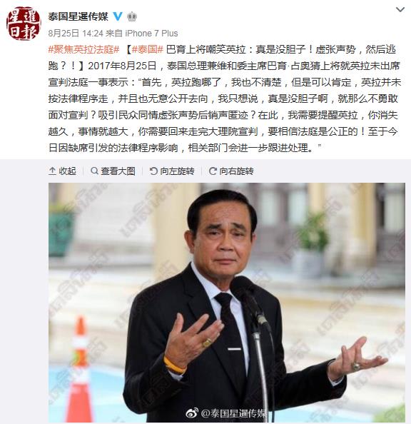 巴育嘲笑:真是沒(méi)膽子!
