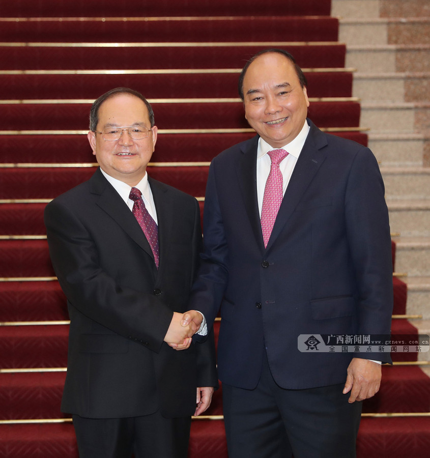 319日,自治區(qū)黨委書記鹿心社在河內(nèi)拜會(huì)越南總理阮春福。記者 黃克 攝